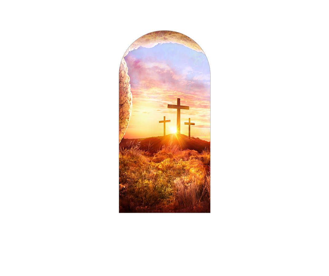 Painel De Festa Romano 1,00x2,00- Páscoa Cristã Cruz no Amanhecer 012