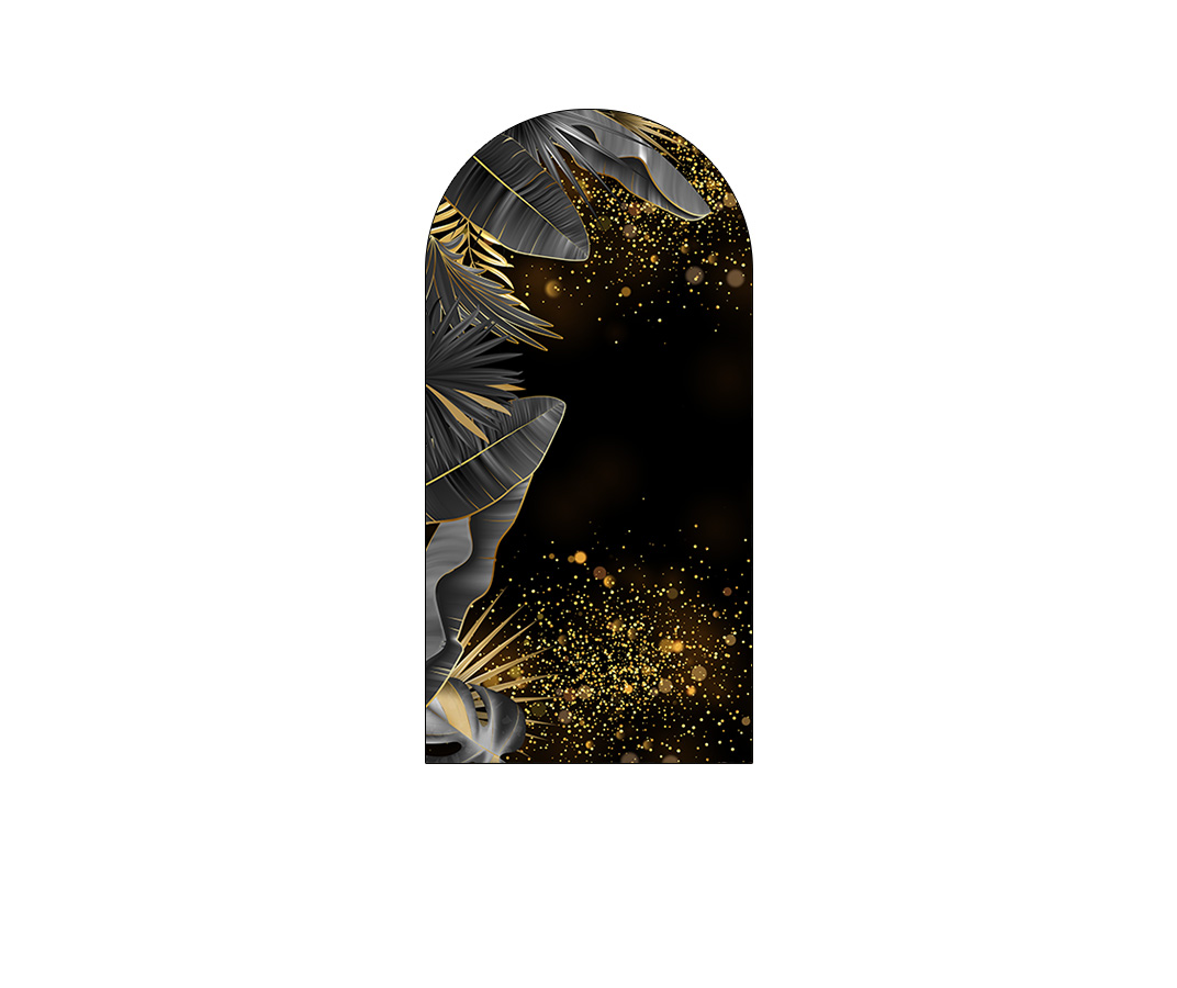 Painel De Festa Romano 1,00x2,00- Tropical Chique Preto com Dourado 022