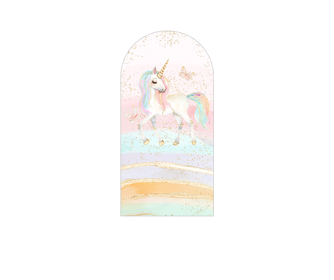 Painel De Festa Romano 1,00x2,00- Unicórnio Candy Aquarela Efeito Glitter 014