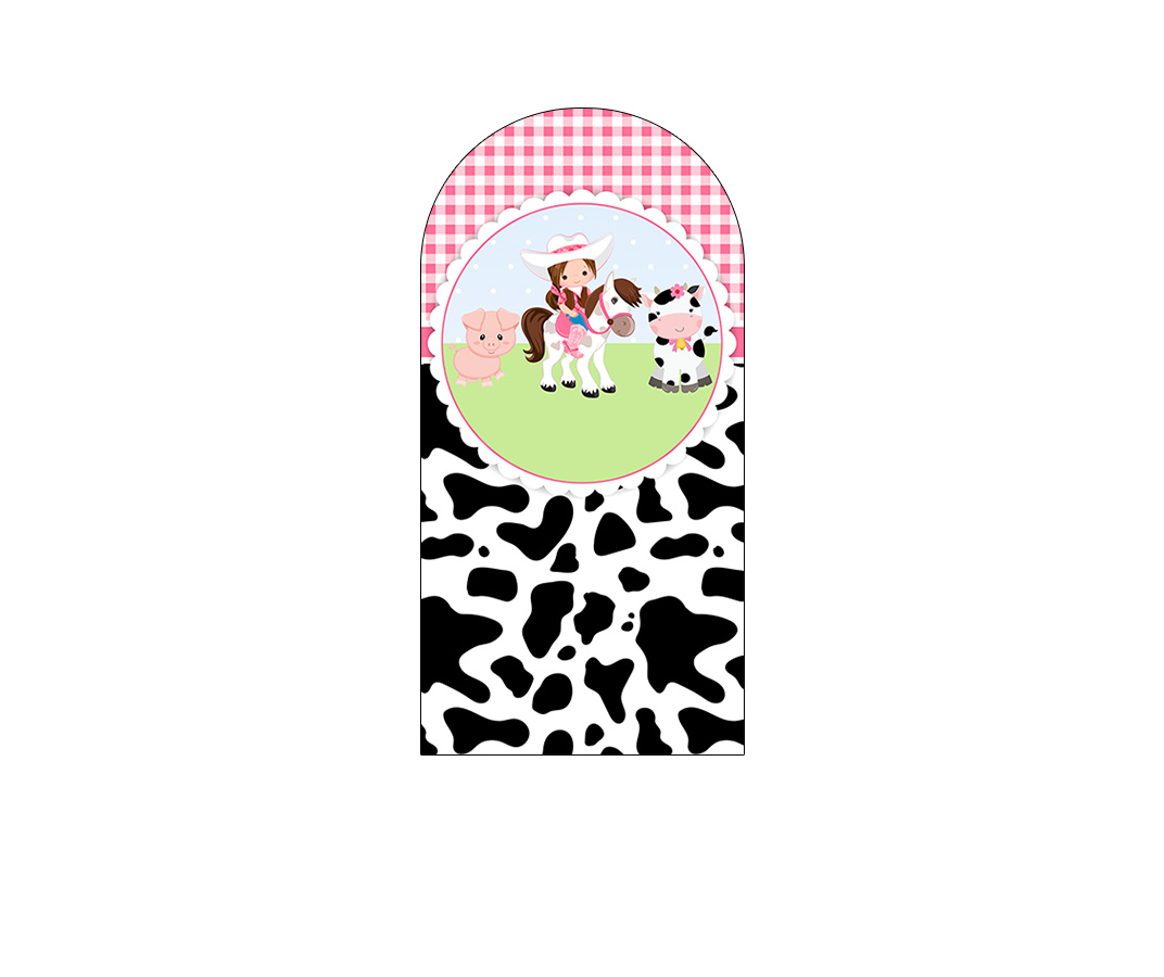 Painel De Festa Romano 1,00x2,00- Vaqueira Rosa com Animais 030