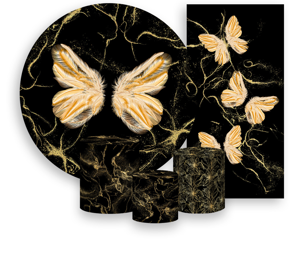 Painel De Festa + Trio De Capas Cilindro + Faixa Veste Fácil - Asas Douradas 005