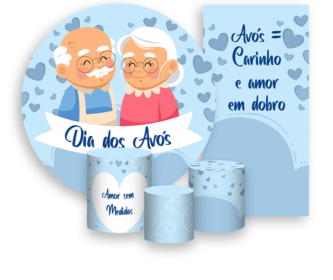 Painel De Festa + Trio De Capas Cilindro + Faixa Veste Fácil -  Dia dos Avós Corações Azul 022