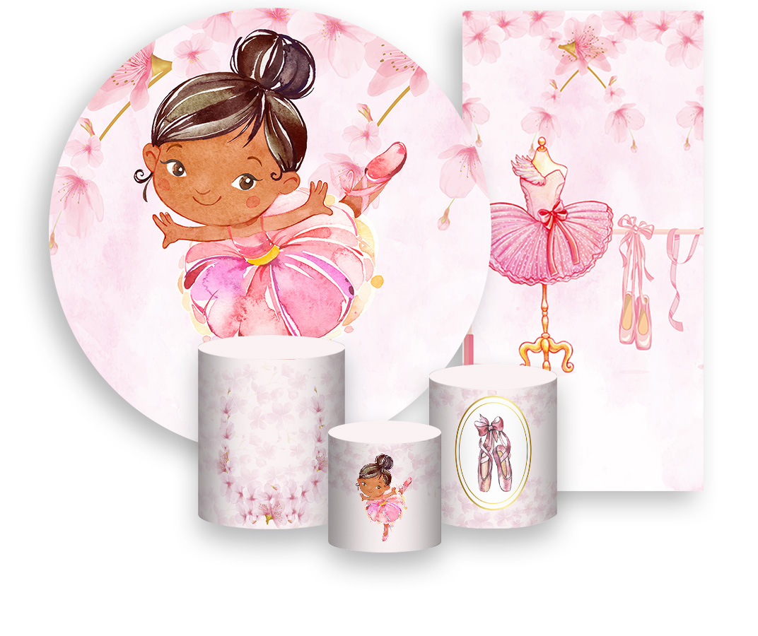 Painel De Festa + Trio De Capas Cilindro + Faixa Veste Fácil - Bailarina Tutu Rosa 012