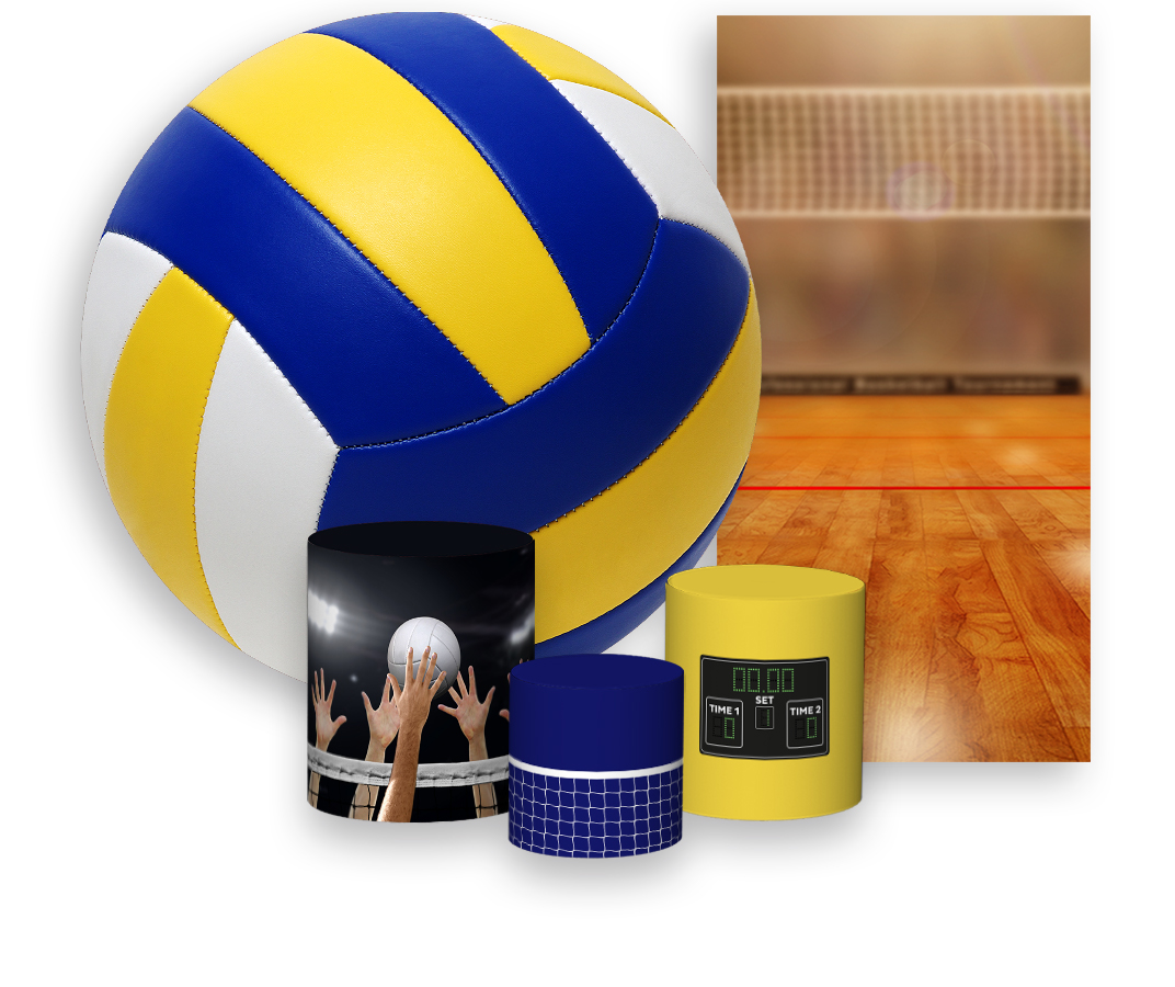 Painel De Festa + Trio De Capas Cilindro + Faixa Veste Fácil - Bola de Vôlei 012
