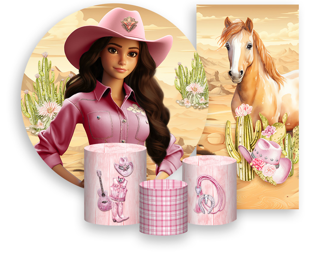 Painel De Festa + Trio De Capas Cilindro + Faixa Veste Fácil - Boneca Boiadeira Morena 011