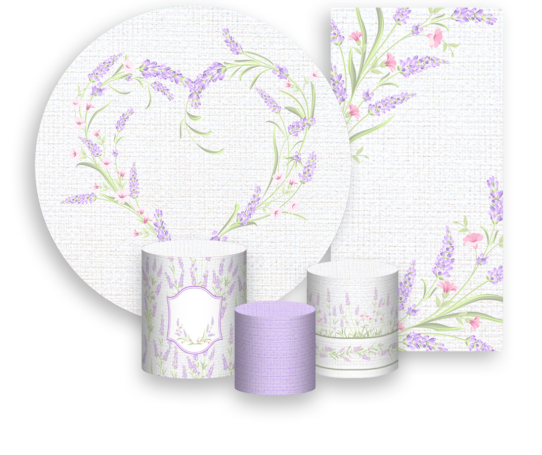 Painel De Festa + Trio De Capas Cilindro + Faixa Veste Fácil - Coração de Lavanda 018