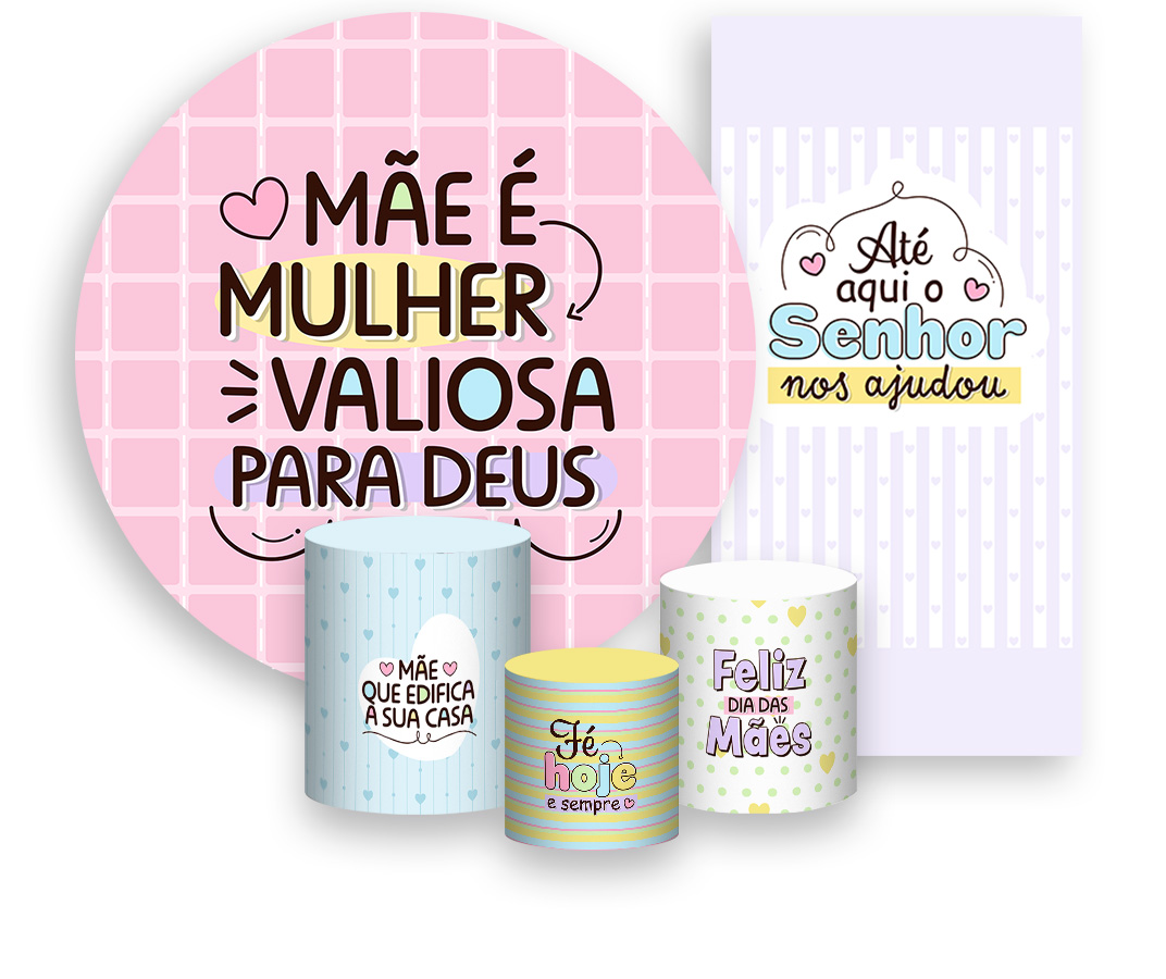 Painel De Festa + Trio De Capas Cilindro + Faixa Veste Fácil - Dia das Mães Cristão 012