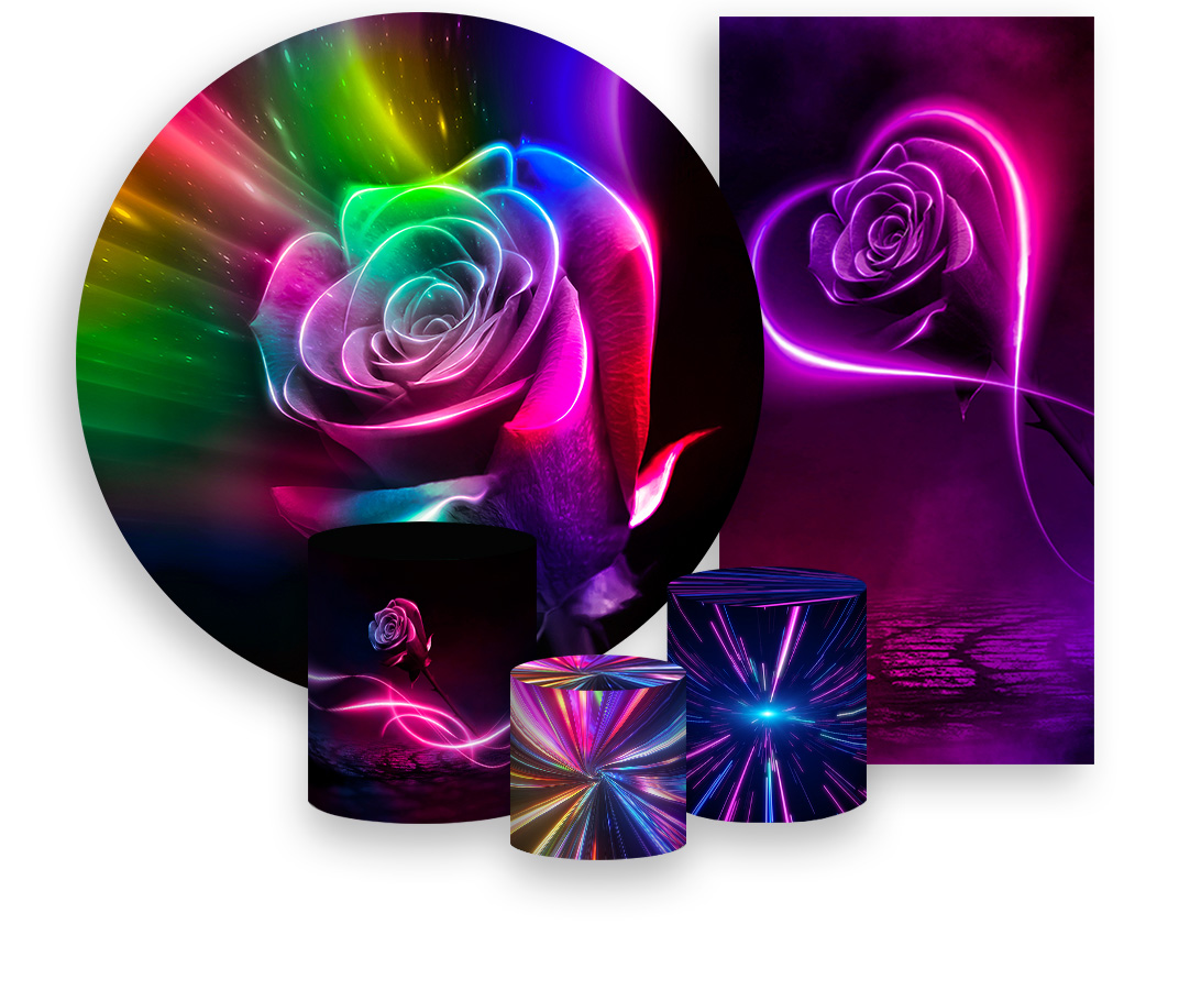 Painel De Festa + Trio De Capas Cilindro + Faixa Veste Fácil - Flor Efeito Neon Colorido 002