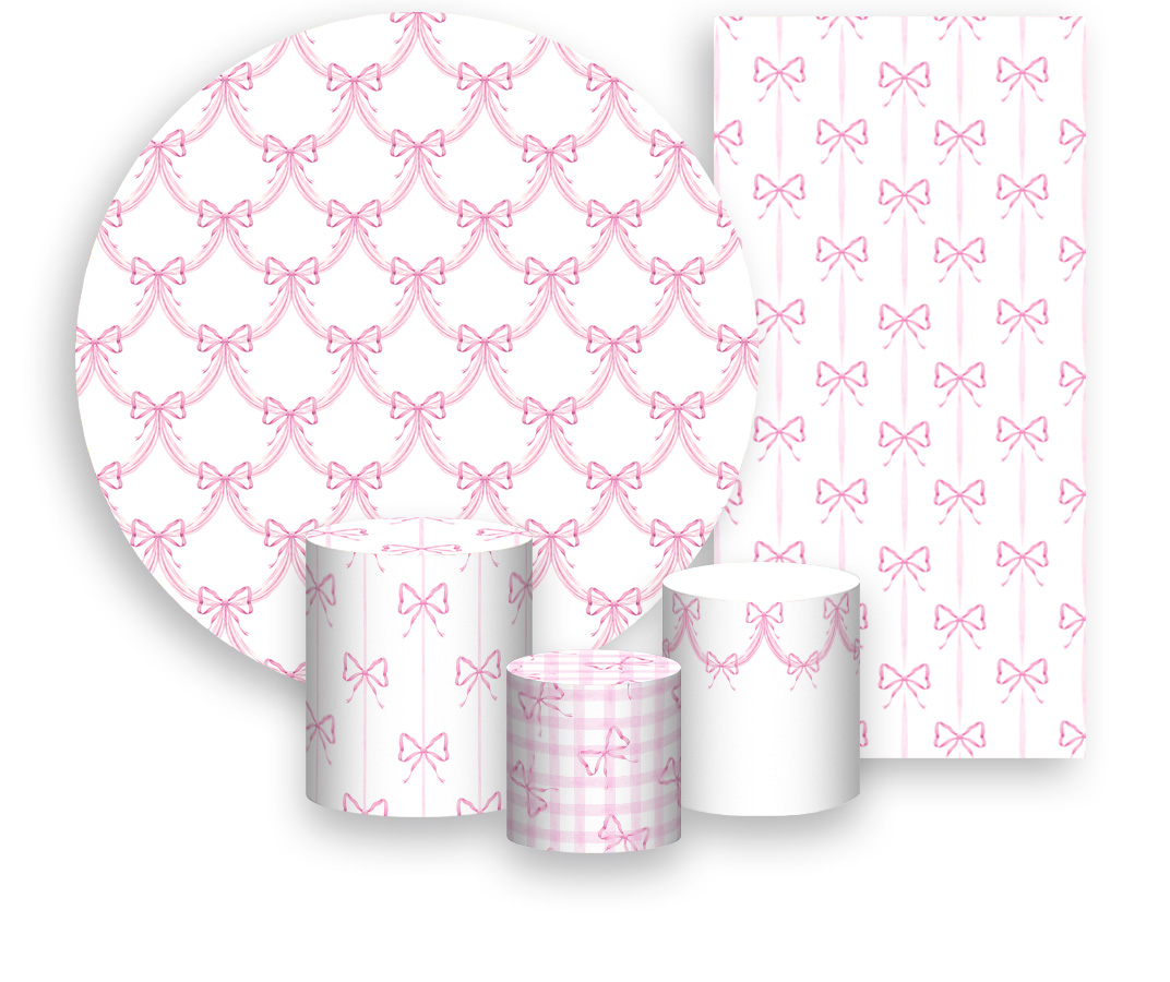 Painel De Festa + Trio De Capas Cilindro + Faixa Veste Fácil - Laços e Fitas Entrelaçados Rosas 023