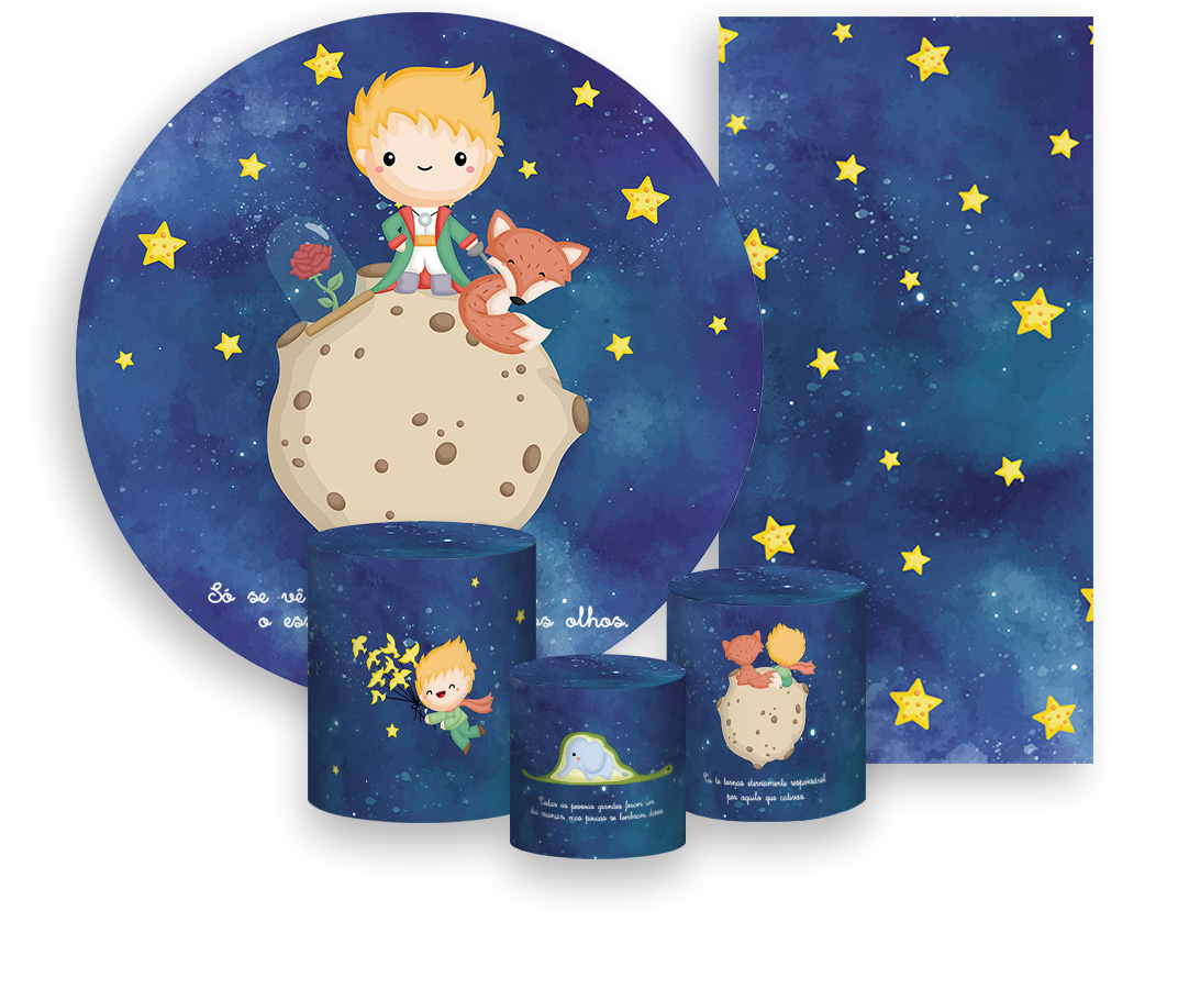 Painel De Festa + Trio De Capas Cilindro + Faixa Veste Fácil - Pequeno Príncipe no Pequeno Planeta 009
