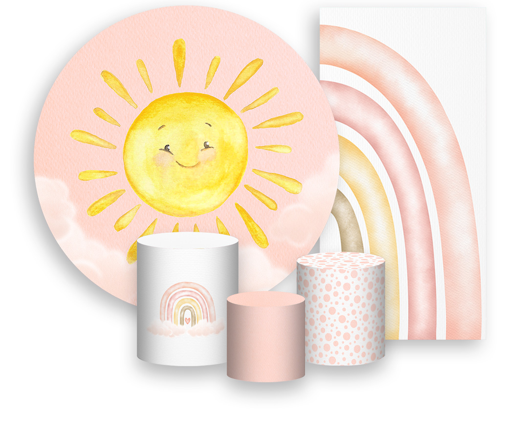 Painel De Festa + Trio De Capas Cilindro + Faixa Veste Fácil - Sol Céu Rosa 015