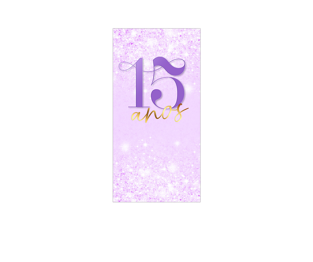 Painel De Festa Vertical 1,00 x 2,00 - 15 Anos Lilás Efeito Glitter 203