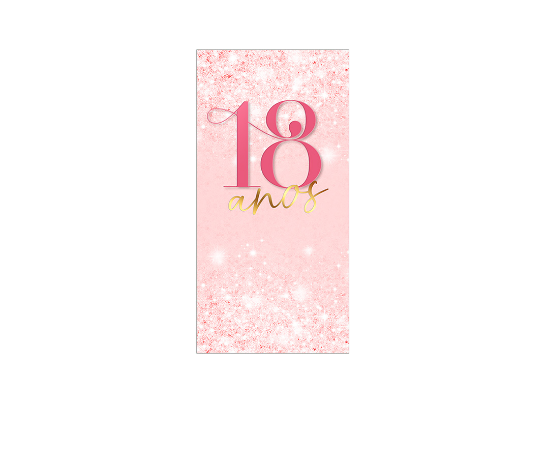 Painel De Festa Vertical 1,00 x 2,00 - 18 Anos Rosa Suave Efeito Glitter 215
