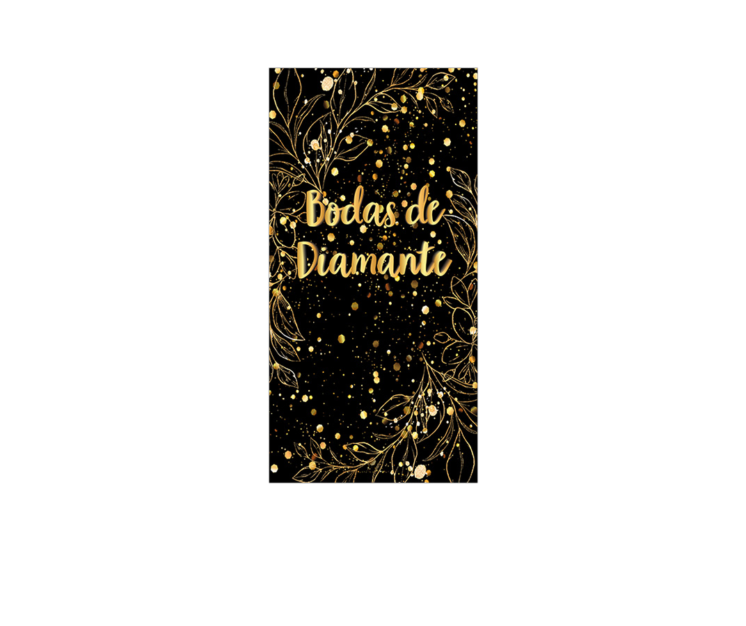 Painel De Festa Vertical 1,00 x 2,00 - Bodas de Diamante Efeito Brilhos Dourados 009