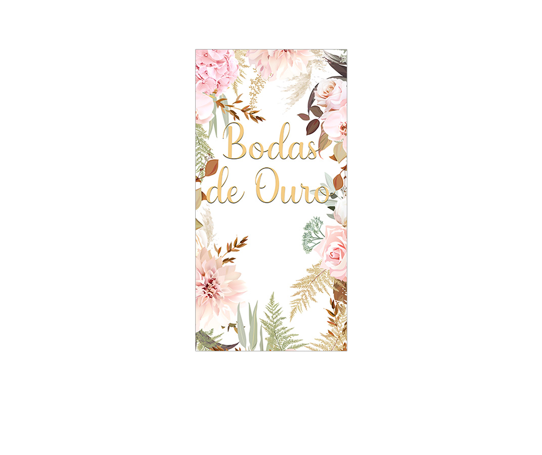 Painel De Festa Vertical 1,00 x 2,00 - Bodas de Ouro Floral 031