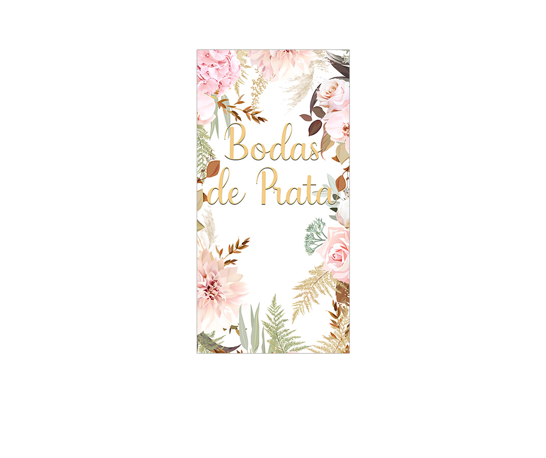 Painel De Festa Vertical 1,00 x 2,00 - Bodas de Prata Floral 034