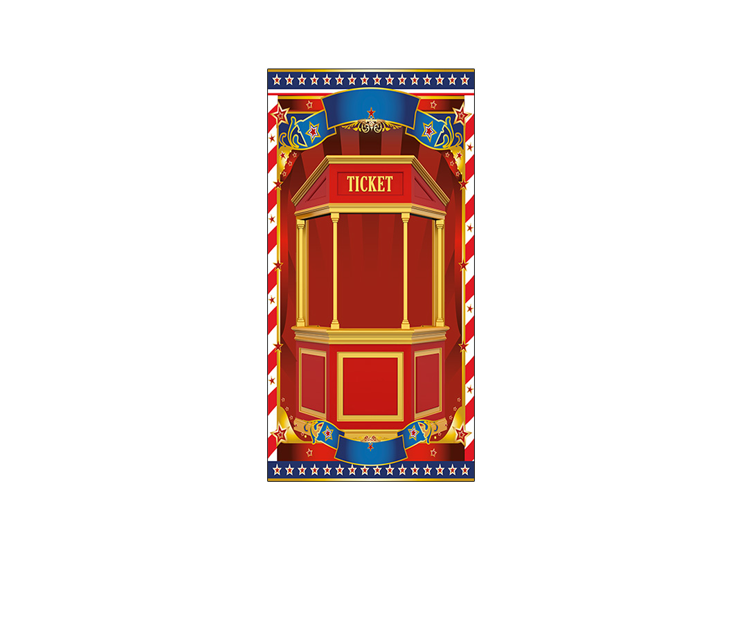 Painel De Festa Vertical 1,00 x 2,00 - Circo Bilheteria Vermelho e Dourado 016