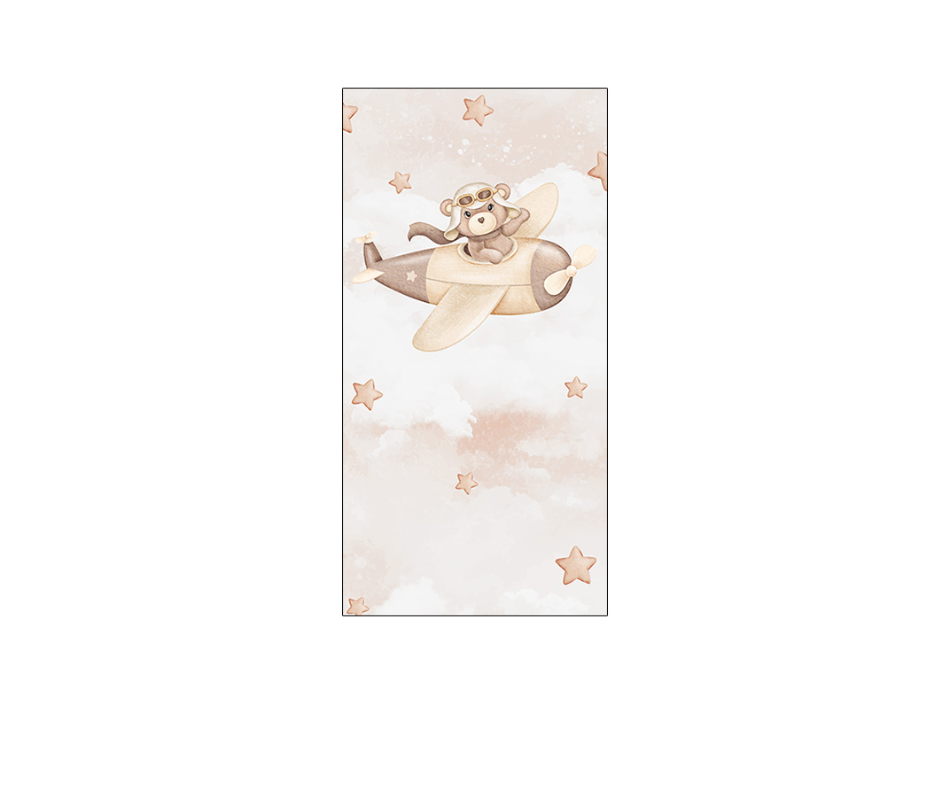 Painel De Festa Vertical 1,00 x 2,00 - Chá de Bebê Bege Urso Aviador 074