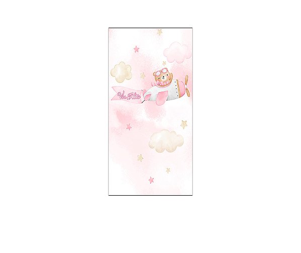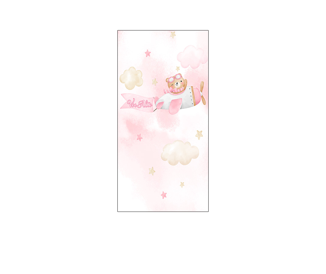 Painel De Festa Vertical 1,00 x 2,00 - Chá de Bebê Ursinha Aviadora Cute 085