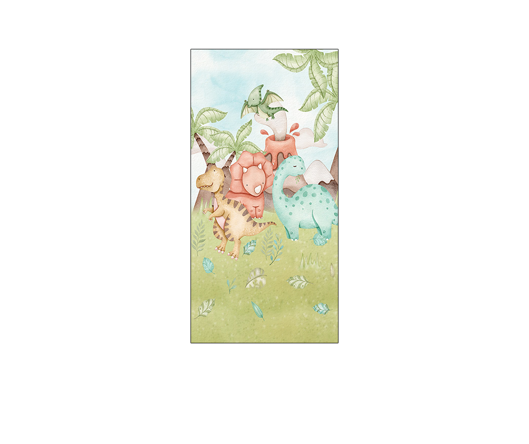 Painel De Festa Vertical 1,00 x 2,00 - Dinossauros Cute Aquarela 024