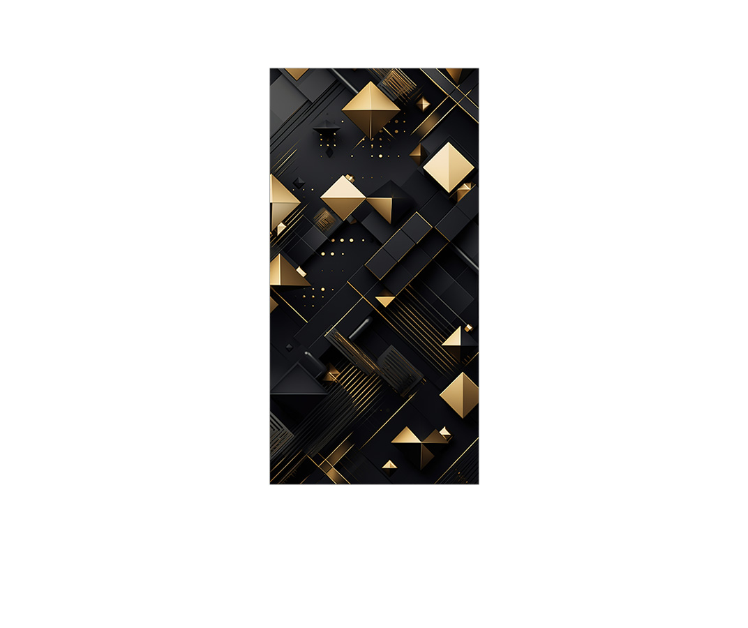 Painel De Festa Vertical 1,00 x 2,00 - Efeito Geométrico Preto com Dourado 023