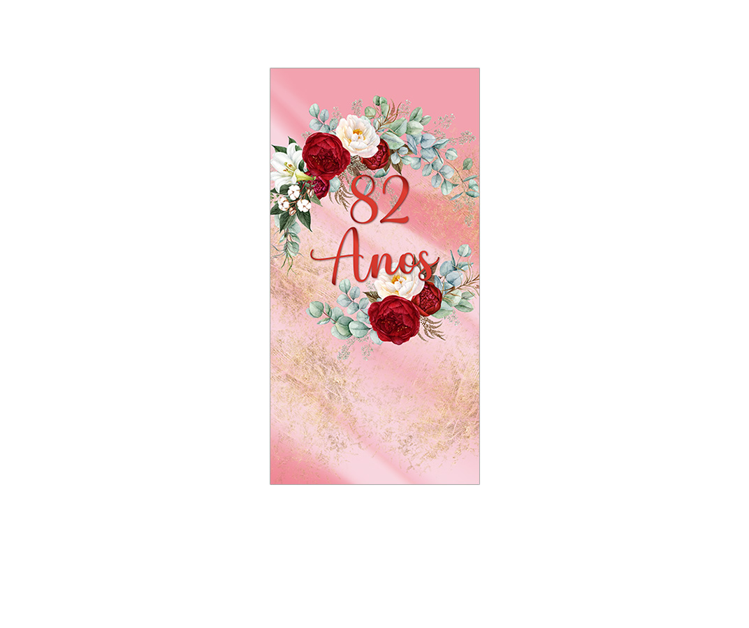 Painel De Festa Vertical 1,00 x 2,00 - Efeito Mármore Floral 82 Anos 081