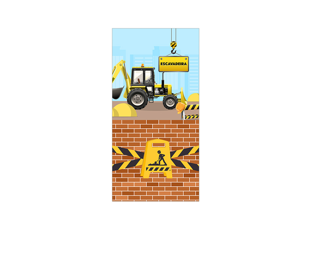 Painel De Festa Vertical 1,00 x 2,00 - Escavadeira Área de Construção 016