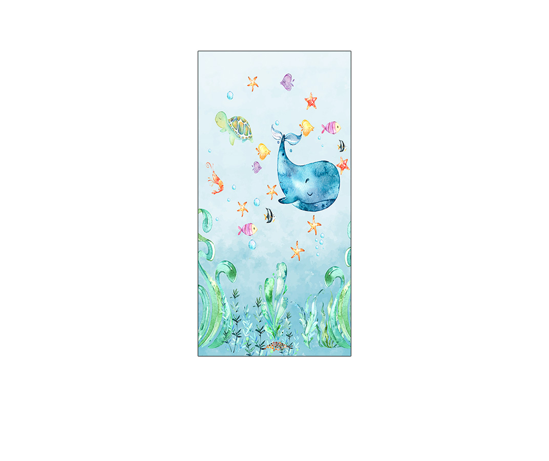 Painel De Festa Vertical 1,00 x 2,00 - Fundo do Mar Baleia Aquarela 006