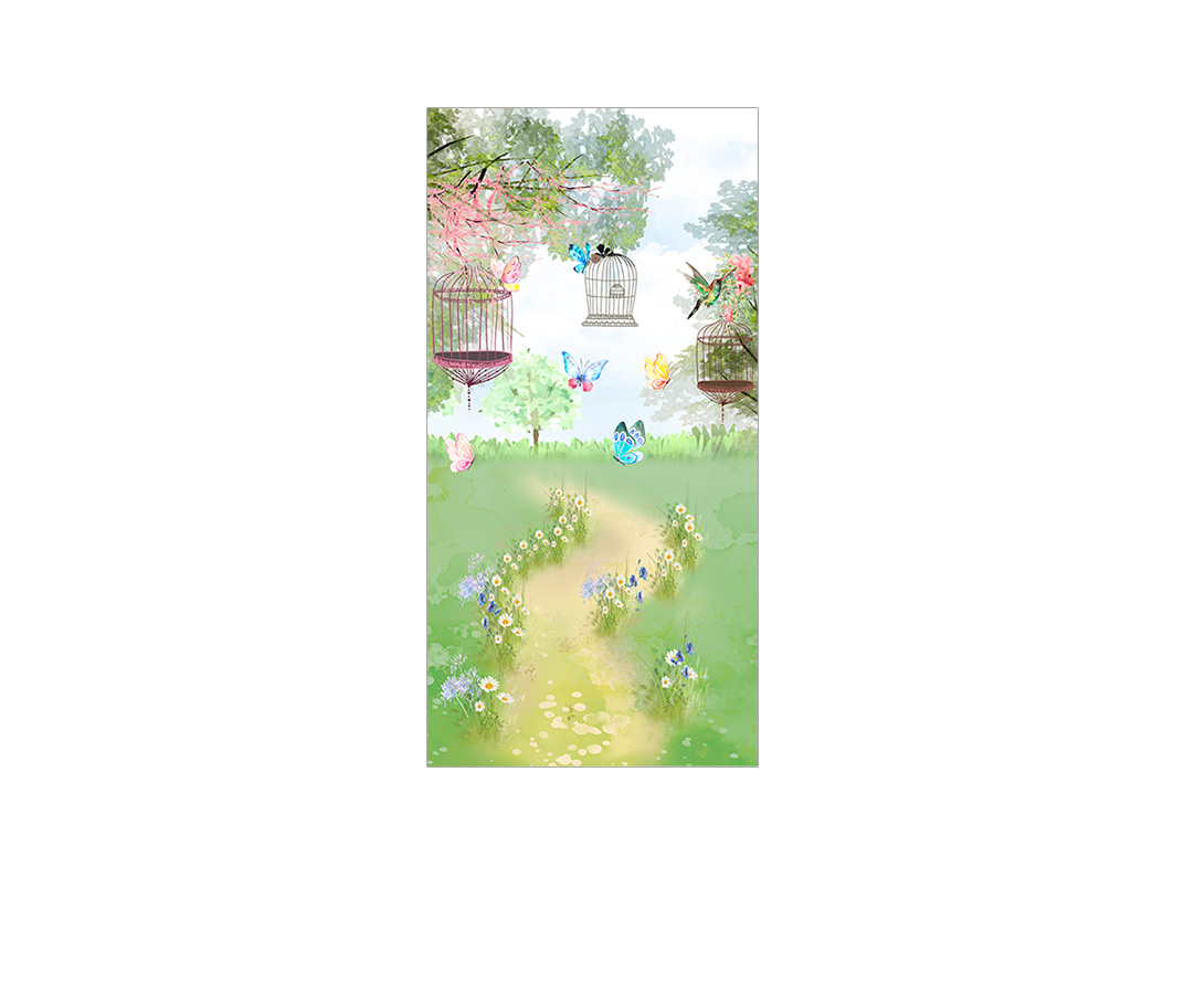Painel De Festa Vertical 1,00 x 2,00 - Jardim Aquarela Gaiolas e Borboletas 013
