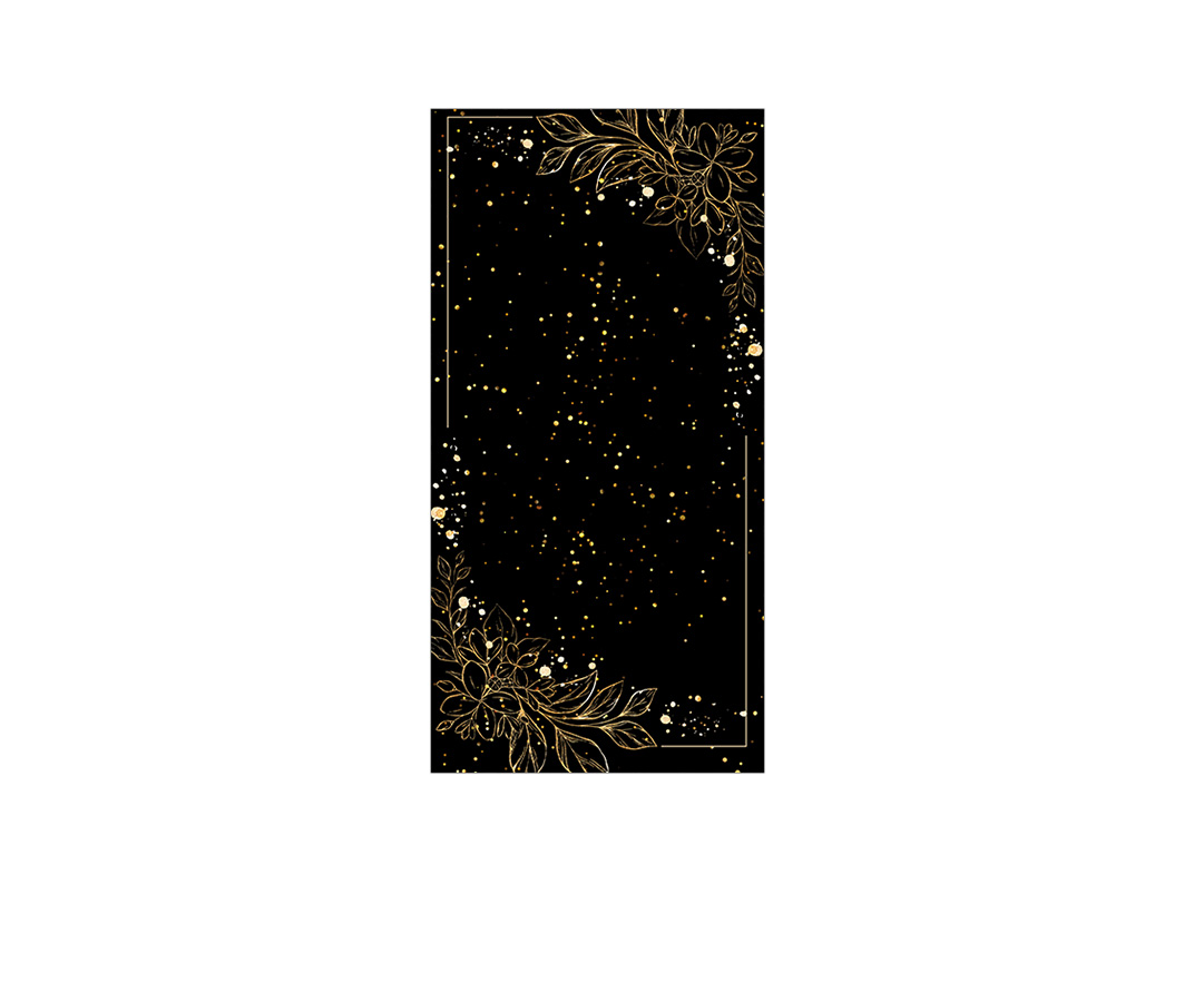 Painel De Festa Vertical 1,00 x 2,00 - Preto com Folhagens Efeito Brilhos Dourados 052