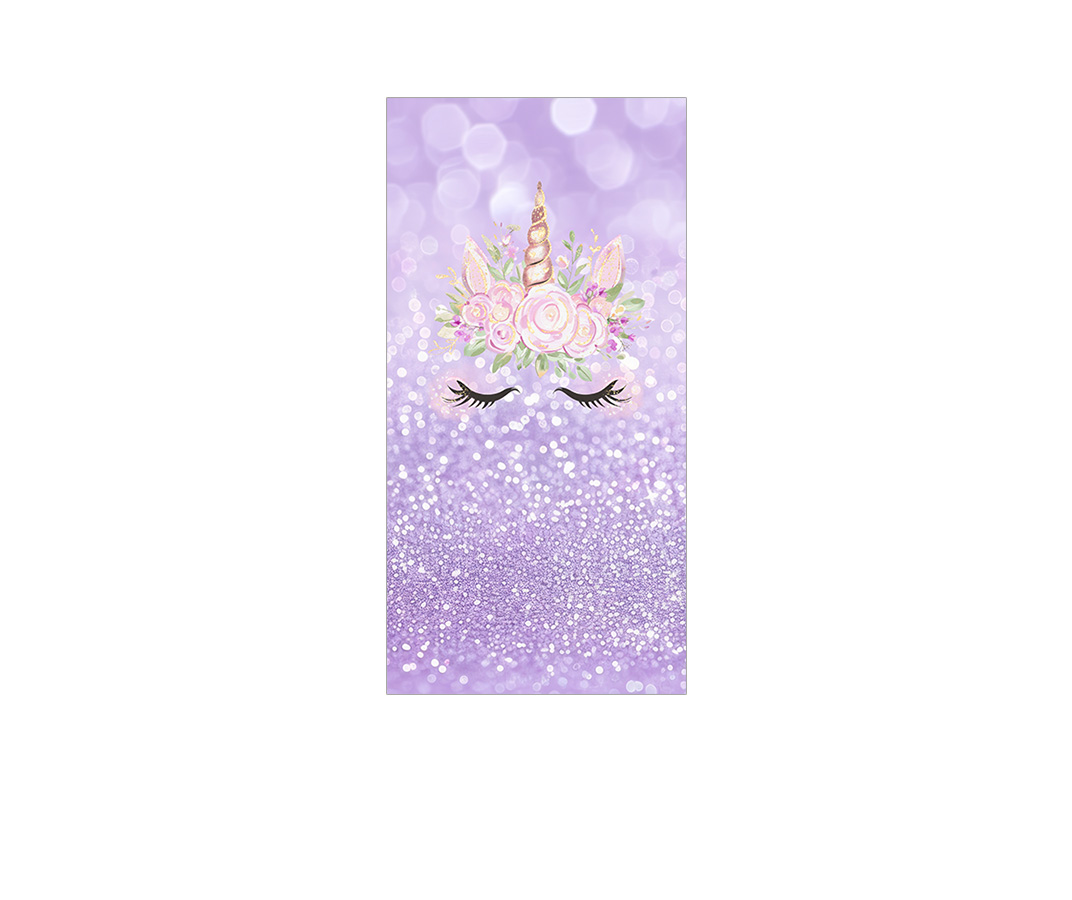 Painel De Festa Vertical 1,00 x 2,00 - Unicórnio Efeito Glitter Lilás 015