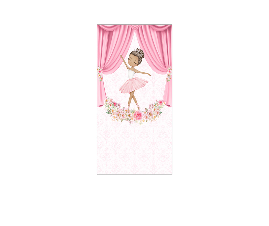 Painel De Festa Vertical 1,00x2,00 - Bailarina Cortina e Flores 038