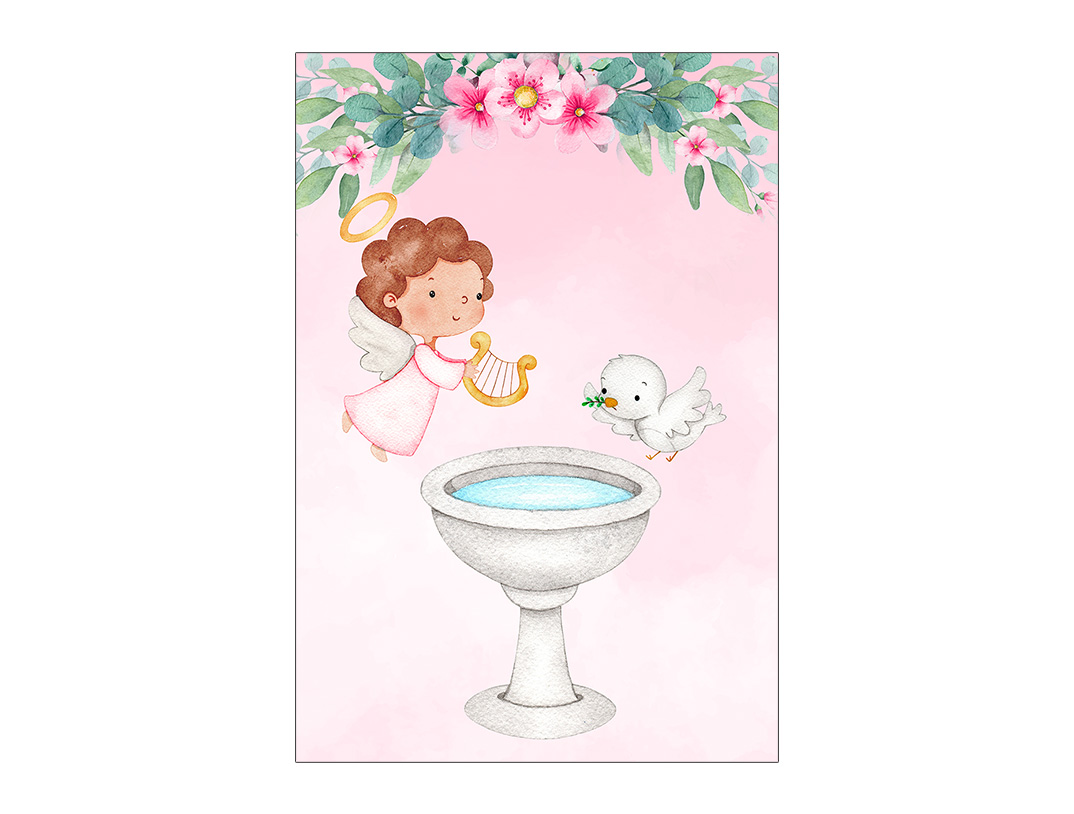 Painel De Festa Vertical 1,50 x 2,20 - Batizado Anja Rosa Aquarela 033