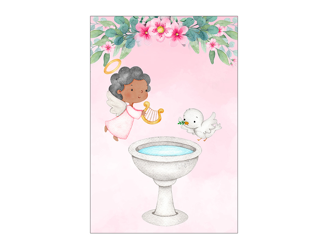 Painel De Festa Vertical 1,50 x 2,20 - Batizado Anja Rosa Aquarela 035
