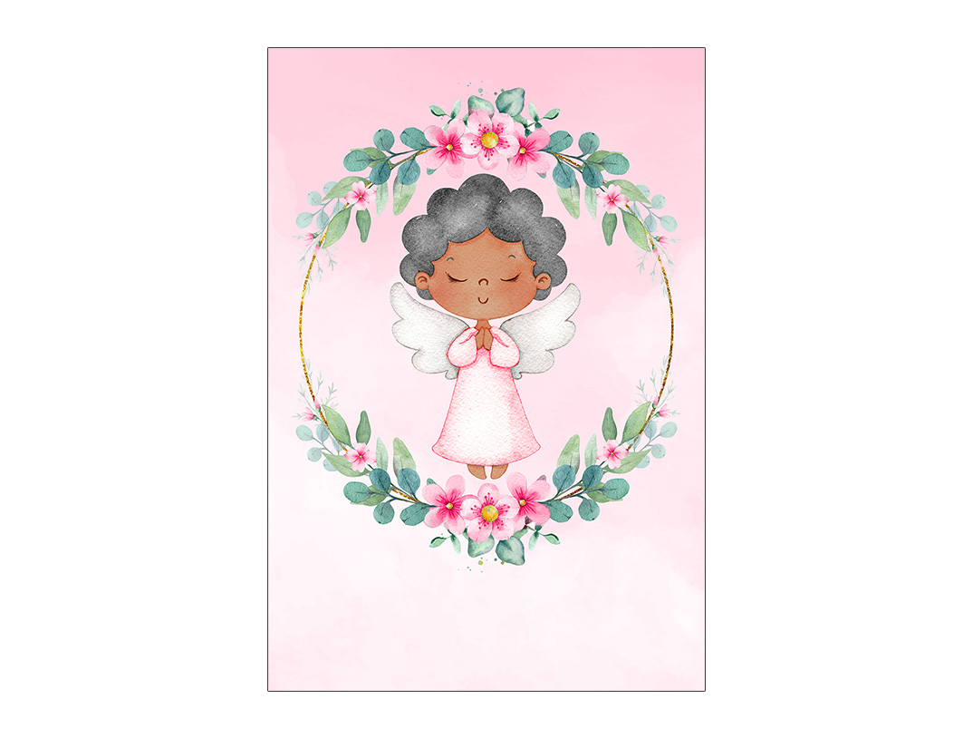 Painel De Festa Vertical 1,50 x 2,20 - Batizado Anjinha Rosa 031