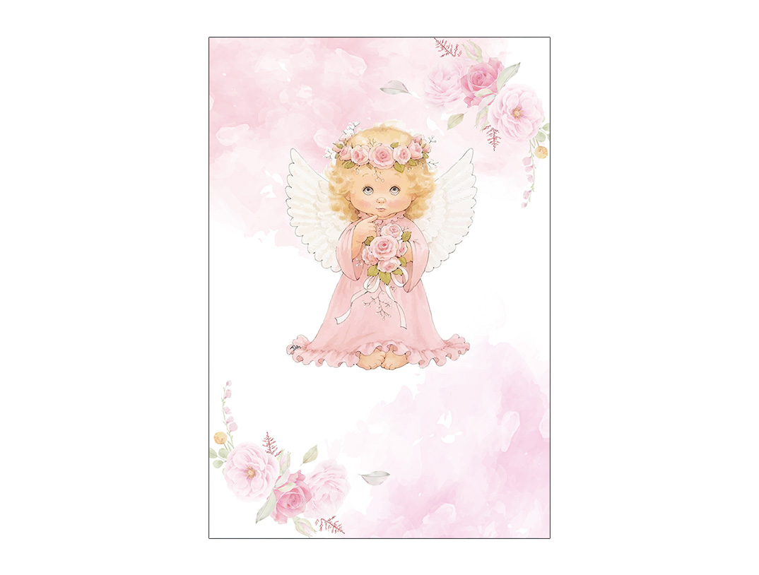 Painel De Festa Vertical 1,50 x 2,20 - Batizado Anjinha Rosa Floral 012