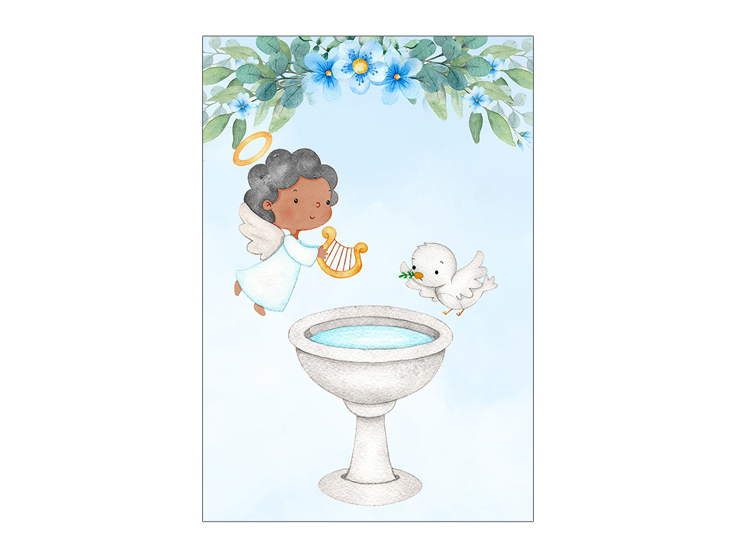 Painel De Festa Vertical 1,50 x 2,20 - Batizado Anjinho Cute Azul 043