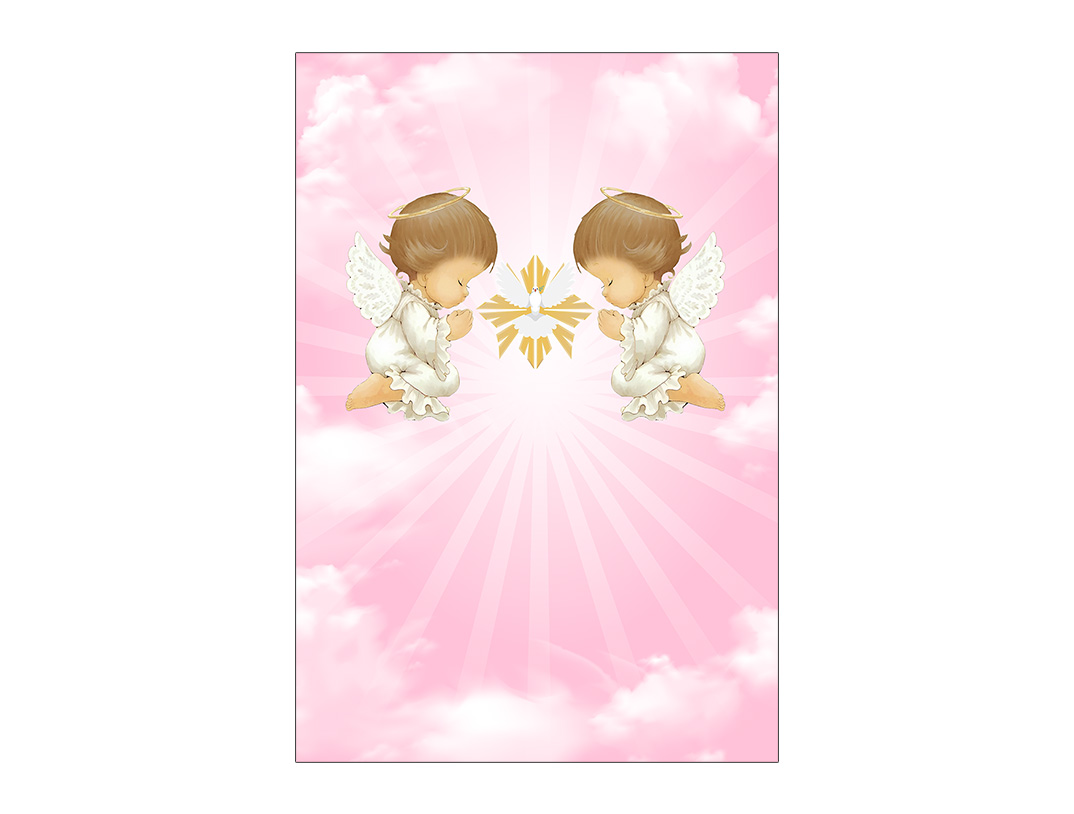 Painel De Festa Vertical 1,50 x 2,20 - Batizado Anjinhos Rosa 036