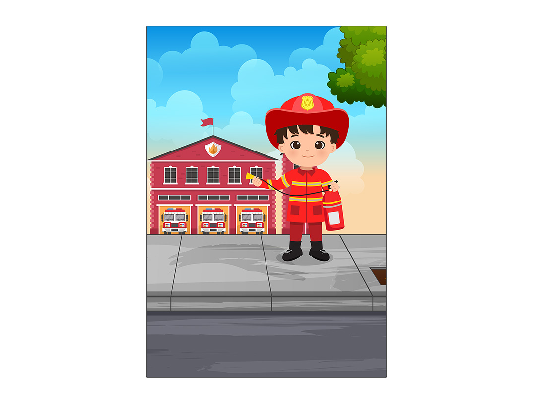 Painel De Festa Vertical 1,50 x 2,20 - Bombeiro Cute na Cidade 007