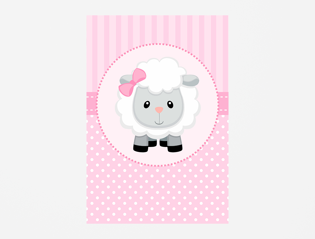 Painel De Festa Vertical 1,50 x 2,20 - Chá de Bebê Ovelinha Cute Rosa 034