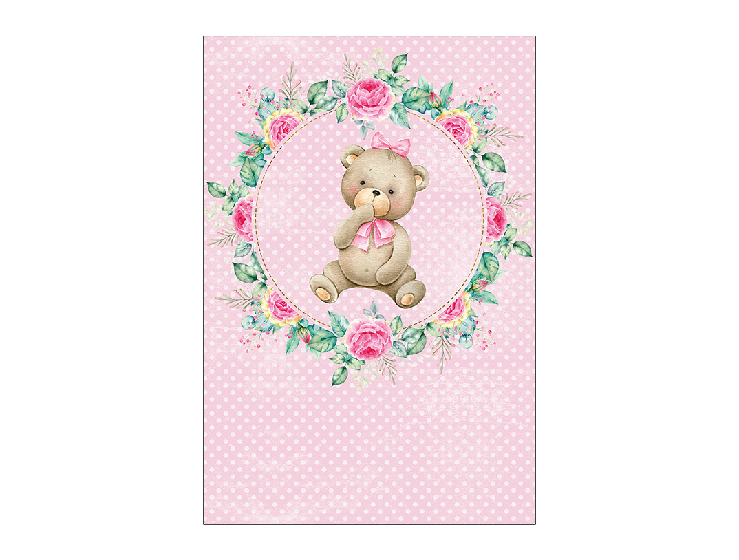 Painel De Festa Vertical 1,50 x 2,20 - Chá de Bebê Ursinha Floral 021
