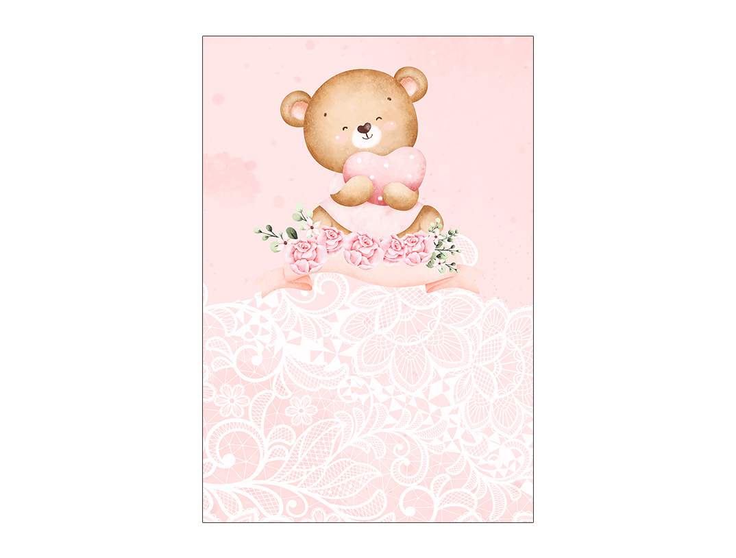 Painel De Festa Vertical 1,50 x 2,20 - Chá de Bebê Ursinho Florido Rosa 046
