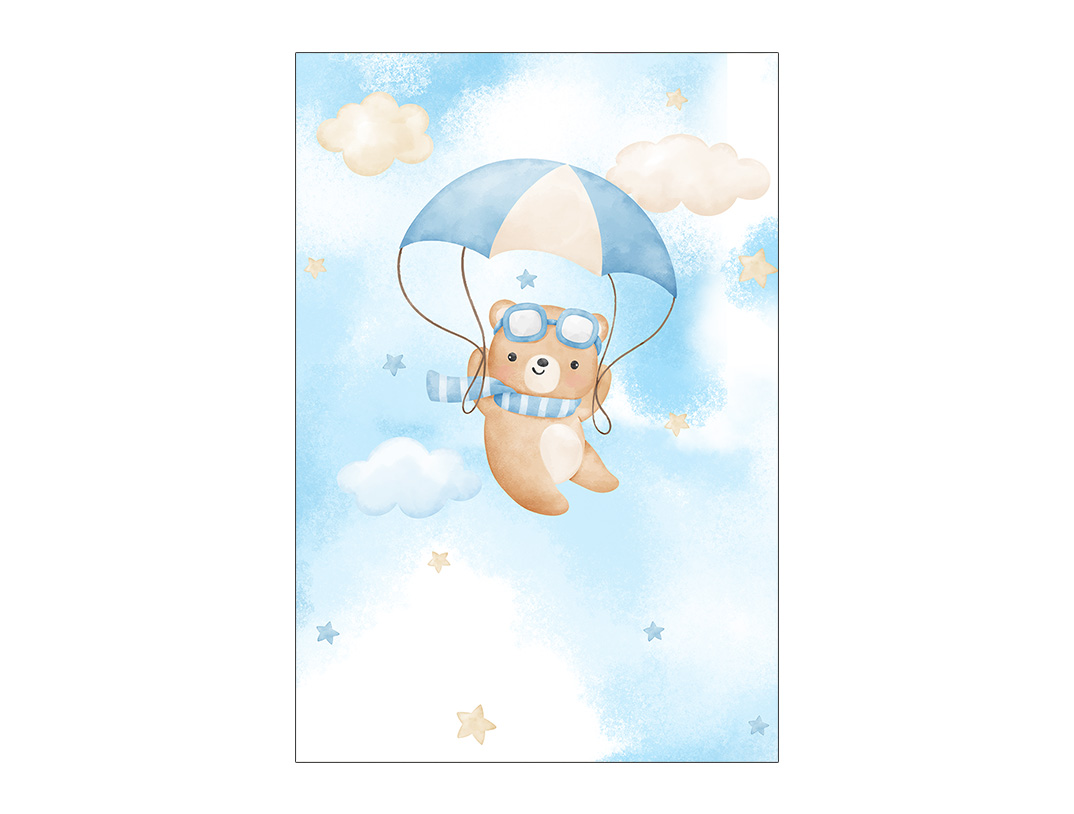 Painel De Festa Vertical 1,50 x 2,20 - Chá de Bebê Urso Aquarela 078