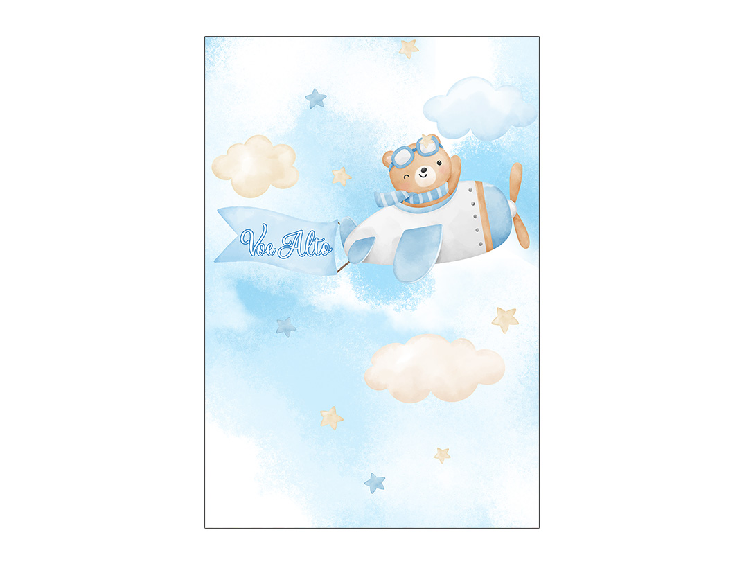 Painel De Festa Vertical 1,50 x 2,20 - Chá de Bebê Urso Aquarela 079