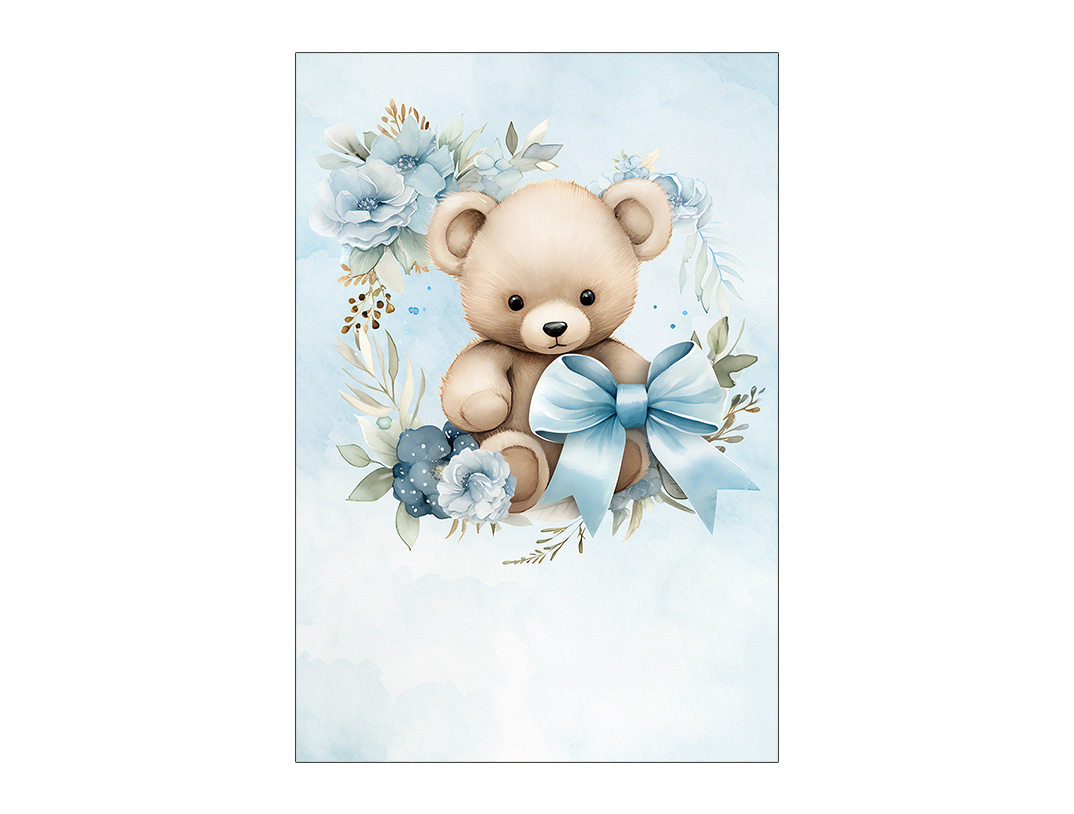 Painel De Festa Vertical 1,50 x 2,20 - Chá de Bebê Urso Flores e Laços 076