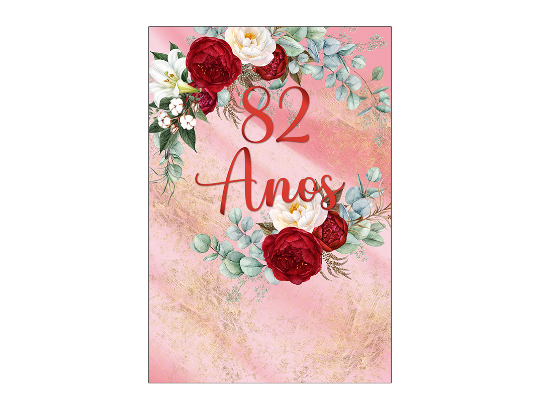 Painel De Festa Vertical 1,50 x 2,20 - Efeito Mármore Floral 82 Anos 081