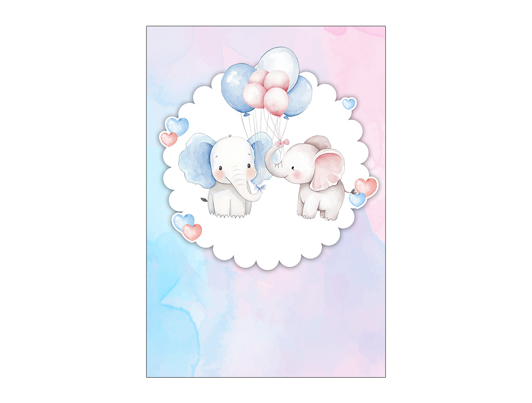 Painel De Festa Vertical 1,50 x 2,20 - Elefantinhos com Balões Azul e Rosa 058