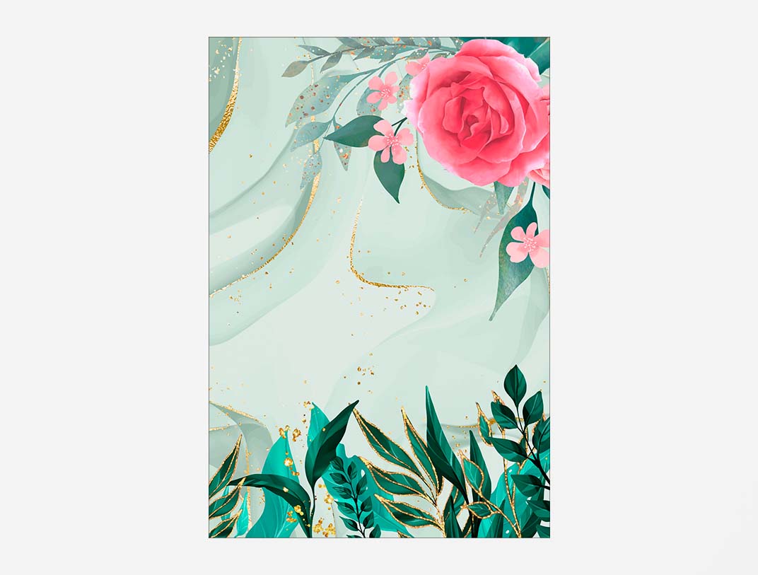 Painel De Festa Vertical 1,50 x 2,20 - Flor Rosa com Efeito Mármore Verde 024