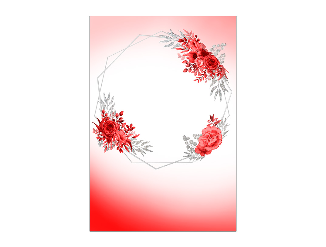Painel De Festa Vertical 1,50 x 2,20 - Flores Vermelhas Com Geométrico Prata 062