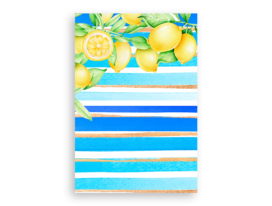 Painel De Festa Vertical 1,50 x 2,20 - Frutinha Limão Siciliano Listrado Azul 023